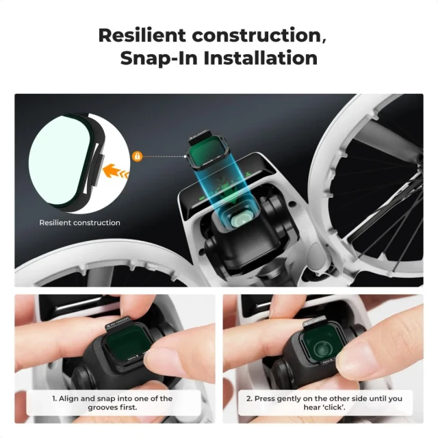 Der UV-Filter für DJI Flip verhindert UV-Strahlung auf dem Bild, schützt das Objektiv vor Staub und Wasser. Jede Filterlinse ist aus hochwertigem AGC-Optikglas gefertigt und verfügt über eine 28-lagige Nanobeschichtung, die Reflexionen, Streulicht und Geisterbilder deutlich reduziert und so die Gesamtbildqualität verbessert. Diese Kombination sorgt dafür, dass Ihre Aufnahmen atemberaubende Klarheit, Farben und Details behalten.