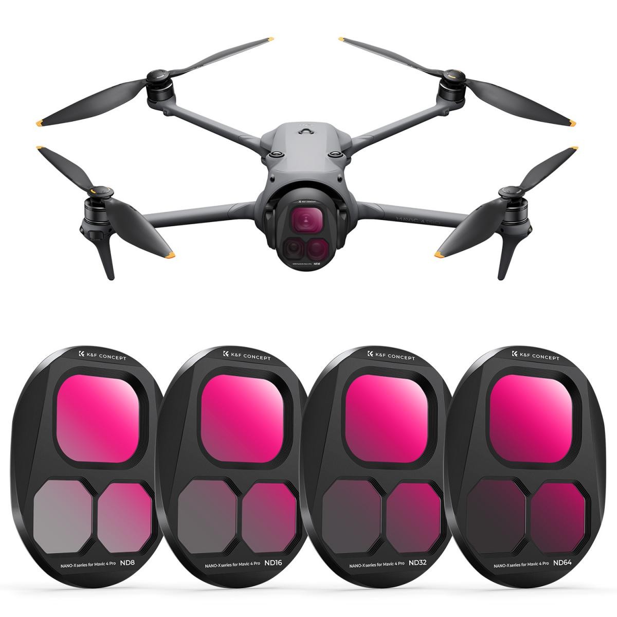 Das K&F CONCEPT DJI Mavic 4 PRO ND-Filter-Kit SKU1640 enthält ND8-, ND16-, ND32- und ND64-Objektive für eine präzise Belichtungssteuerung. Genießen Sie atemberaubende Luftaufnahmen und Videografie mit diesen professionellen HD-Objektiven. Ihre doppelseitige Beschichtung bietet verbesserte Haltbarkeit und ist wasserdicht für einen zuverlässigen Einsatz unter allen Bedingungen.