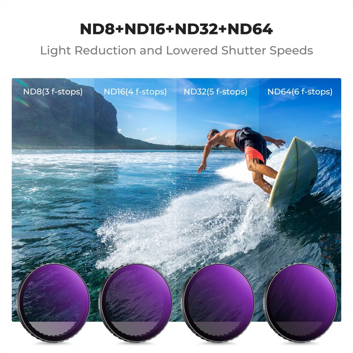 Verbessern Sie Ihre DJI Osmo Action 4 -Fotografie und -Videografie mit dem K&F CONCEPT 4-Pack ND-Filter-Kit. Mit optischen Glasfiltern ND8, ND16, ND32 und ND64 mit fortschrittlicher Mehrfachbeschichtung bietet dieses Kit überragende Klarheit, Kratzfestigkeit und vielseitige Lichtreduzierung für Aufnahmen in professioneller Qualität bei allen Lichtverhältnissen.
