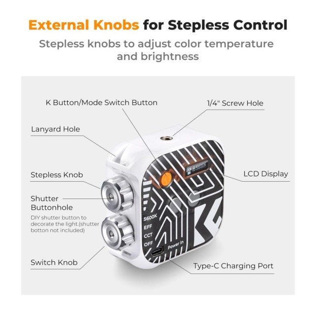 • * 【Multiple Color Temperature Adjustment Modes】 Wenn Sie den Farbtemperaturmodus anpassen, können Sie stufenlos jede gewünschte Farbtemperatur innerhalb des Farbtemperaturbereichs von 2500K-9900K einstellen. Es gibt auch einen festen Farbtemperaturmodus - 5600K, egal welche Farbtemperatur Sie in Wert sind, kann schnell auf 5600K natürliches Licht eingestellt werden, spart Anpassungszeit.