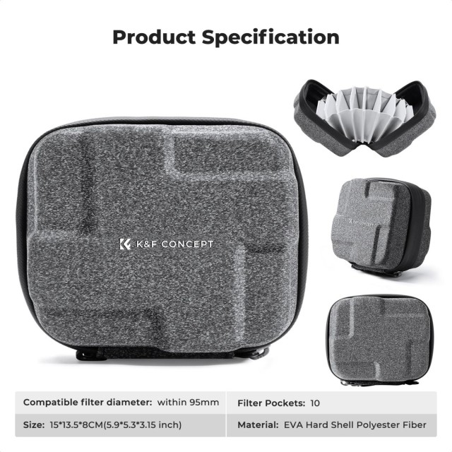 - * 【Robustes und schützendes Design】Das harte EVA-Material bietet hervorragenden Schutz vor Druck und Stößen und schützt Ihre Filter vor Beschädigungen. Die EVA-Schale ist außerdem wasserdicht (Hinweis: Das Außenmaterial ist nicht wasserdicht), während der wasserabweisende Reißverschluss dafür sorgt, dass Ihre Ausrüstung auch unter schwierigen Bedingungen trocken und staubfrei bleibt.