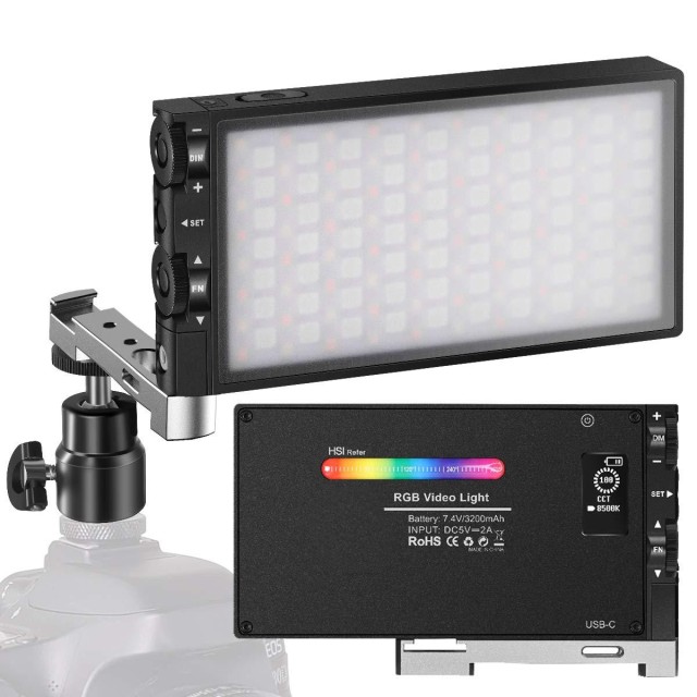 Vollfarbiges RGB-Fülllicht Taschenlampe Eingebauter 12W Akku LED-Kameraleuchte 360° 12 Lichteffekte Aluminiumlegierung Panel Videoleuchte