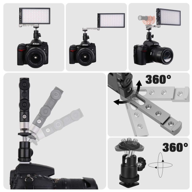 * [Unser LED-Panel-Licht ist mit einem 360-Grad-Dreharm mit Kaltschuh ausgestattet, der es Ihnen ermöglicht, jedes Gerät mit einem Blitzschuhadapter gleichzeitig zu installieren, wie z. B. ein Kameramikrofon, das sehr gut für die Aufnahme geeignet ist.