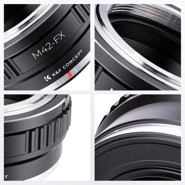 Erleben Sie unvergleichliche Vielseitigkeit mit dem hochwertigen K&F Concept Lens Adapter, der sorgfältig für Fujifilm-Kameras wie die X-A1, X-E2, X-T2 und andere entwickelt wurde. Der aus robustem Messing und Aluminium gefertigte Adapter gewährleistet Stabilität, Präzision und Langlebigkeit und bietet manuelle Bedienung mit der Freiheit des Unendlich-Fokus. Für schwerere Mittelformatobjektive empfiehlt sich die Kombination mit einer Teleobjektivhalterung und einem Stativ für eine optimale Balance während der Aufnahme. Bitte beachten Sie die unendliche Fokusposition für Teleobjektive, die eine präzise Anpassung an unterschiedliche Aufnahmebedingungen ermöglicht. Verbessern Sie Ihre Fotografie mit diesem zuverlässigen und hochwertigen Objektivadapter.