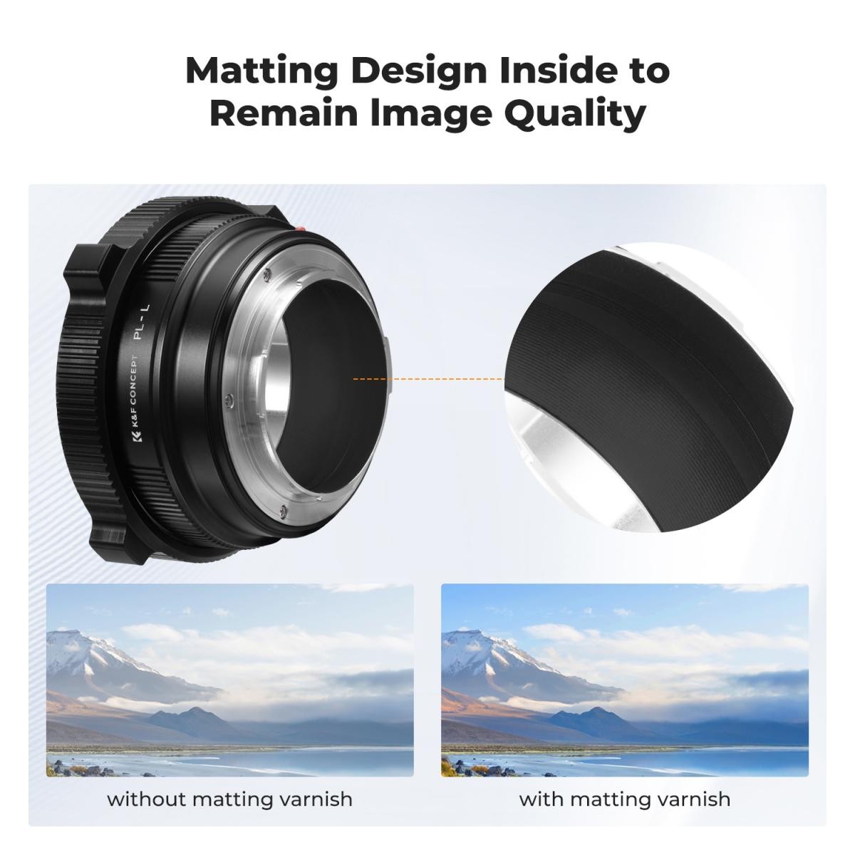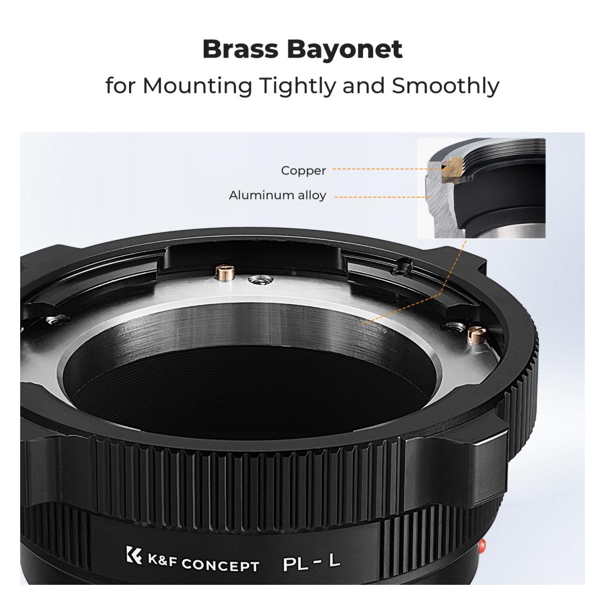 K&F Concept Hochpräziser PL-L-Mount-Adapter: Manueller PL-zu-L-Mount-Adapter mit Unendlichkeitsfokus, hart eloxiertem Aluminium und matter Innenseite für Leica-, Panasonic LUMIX- und Sigma L-Mount-Kameras.