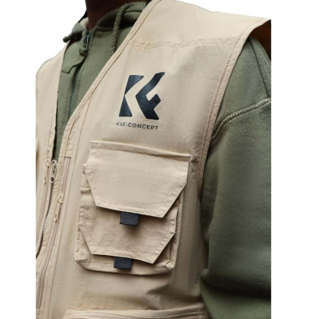 Mit der K&F Concept Photography Vest bleiben Sie unterwegs organisiert und komfortabel. Diese strapazierfähige beige Weste aus leichtem, atmungsaktivem Tassnelon-Gewebe verfügt über mehrere sichere Taschen, in denen Sie Ihre Fotoausrüstung und Outdoor-Utensilien griffbereit verstauen können. Sie wurde speziell für Fotografen, Videografen, Reisende und Abenteurer entwickelt und sorgt für Bewegungsfreiheit und eine gleichmäßige Gewichtsverteilung, sodass Sie sie den ganzen Tag über tragen können.