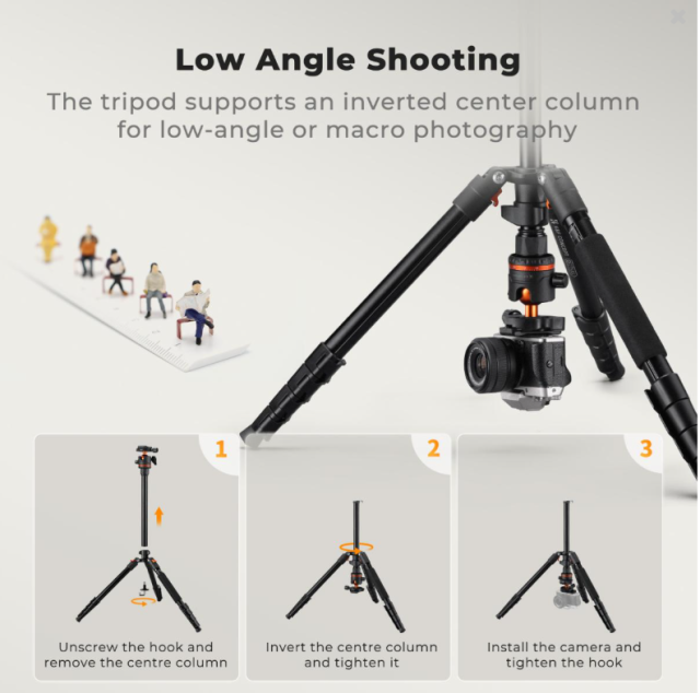 Das K&F 59,4''/1,5m Aluminium-Reisestativ ist ein leichtes und vielseitiges Stativ,