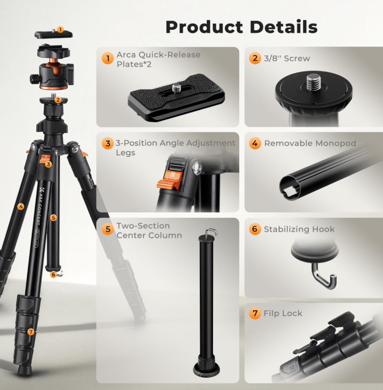 Das K&F Concept 75" Lightweight Tripod ist ein kompaktes, vielseitiges Stativ