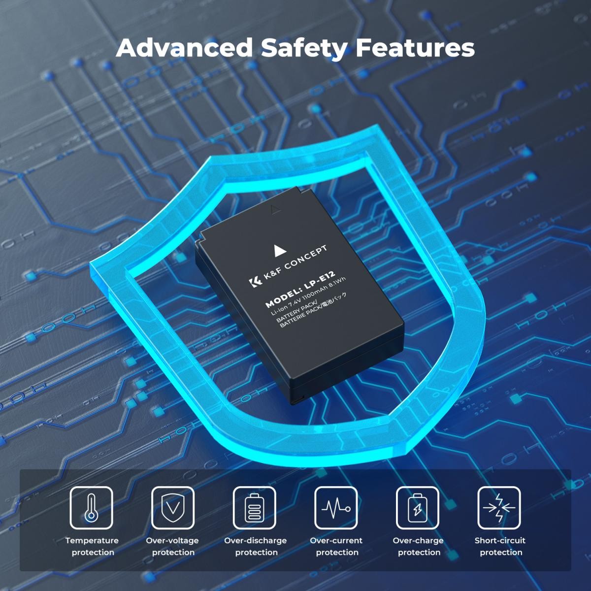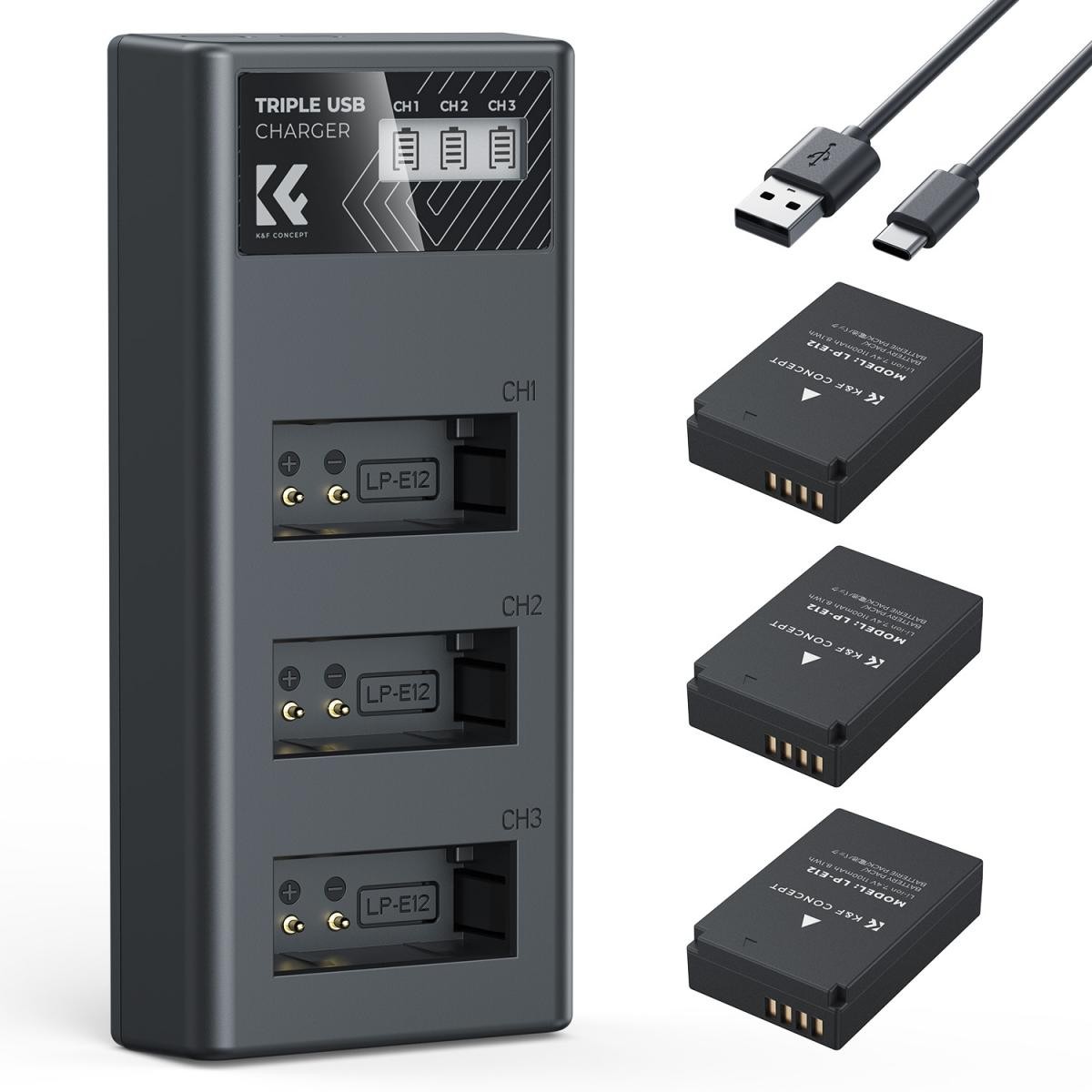 - * 【Mehrere Sicherheitsvorkehrungen】CE/FCC/RoHS/3C-zertifiziert, mit mehreren integrierten Schutzvorrichtungen (Überspannung, Überstrom, Kurzschluss, Überhitzung, Überladung). Das Paket enthält 3 x LPE12-Akkus, 1 x 3-fach-LPE10-Akkuladegerät, 1 x USB-C-Ladekabel.