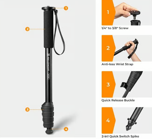 Entdecken Sie unvergleichliche Mobilität und Stabilität mit dem K&F Concept MS16 KF09.138V1 Einbeinstativ für Kameras, einem bahnbrechenden Zubehörteil aus hochwertiger Aluminiumlegierung, das nur 325 g wiegt und dennoch bis zu beeindruckenden 10 kg trägt – damit ist es der perfekte Begleiter für DSLR-, spiegellose oder sogar Kompaktkameras, bei denen jedes Gramm zählt. Dieses Einbeinstativ lässt sich auf eine maximale Höhe von 160 cm ausziehen, um bequem auf Augenhöhe zu fotografieren, und lässt sich auf nur 43 cm zusammenklappen, sodass es problemlos in Rucksäcke oder Kamerataschen passt und Sie zu spontanen Abenteuern begleitet, egal ob Sie auf Wanderwegen unterwegs sind, Sportveranstaltungen begleiten oder sich durch überfüllte Stadtlandschaften bewegen.