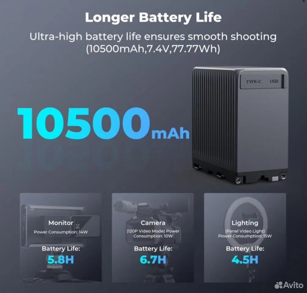 Die Sicherheit wird durch ein mehrstufiges intelligentes Schutzsystem gewährleistet, das vor Überladung, Überstrom, Spannungsschwankungen und Überhitzung schützt. Der Akku besteht aus strapazierfähigem ABS-Kunststoff und Polycarbonat, ist leicht und dennoch robust und eignet sich daher ideal für den Einsatz im Studio und im Außeneinsatz.