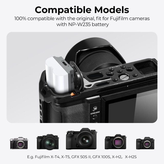 NP-W235 Ersatzakku, perfekt kompatibel mit den Fujifilm-Kameras X-T4, X-T5, GFX 50S II, GFX 100S, X-H2, X-H2S, mit Überspannungsschutz, Schutz vor Überschussaufnahmen und anderen mehrfachen Sicherheitsvorkehrungen. Der mitgelieferte Typ-C-Ladeanschluss kann direkt an den Adapter angeschlossen werden, um ihn mit dem mitgelieferten USB-Typ-A-auf-Typ-C-Ladekabel aufzuladen, so dass kein externes Ladegerät erforderlich ist.