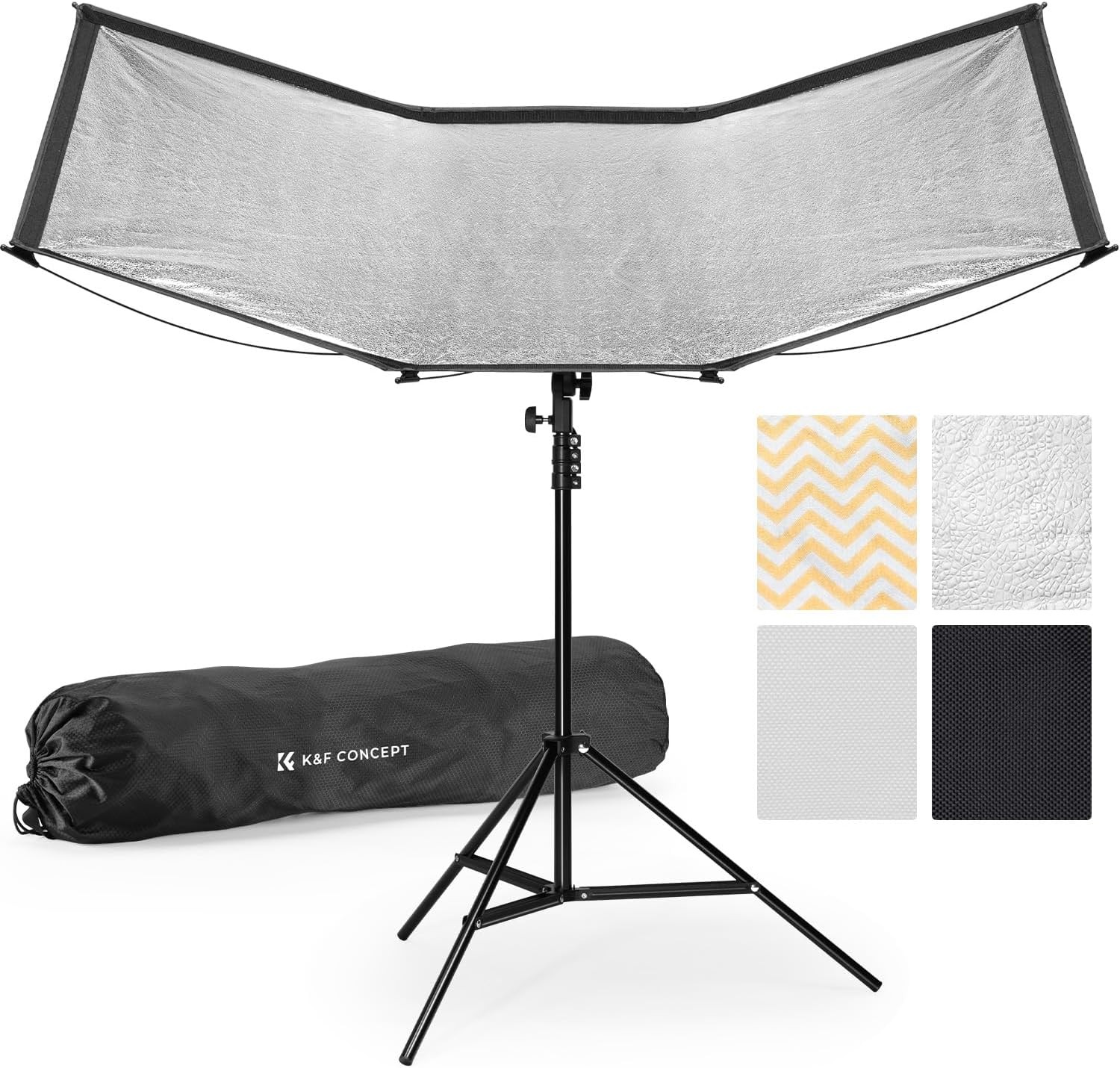 Der K&F CONCEPT Quick-Release Curved Reflector ist ein leichter, tragbarer Reflektor mit den Maßen 123 × 65 cm, der für weiches, schmeichelhaftes Licht entwickelt wurde. Mit seinen 4-in-1-Magnetabdeckungen, der um 180° verstellbaren Basis und der Schnellbefestigung eignet er sich perfekt für Porträts im Freien, Außenaufnahmen und Catchlights in professioneller Qualität.