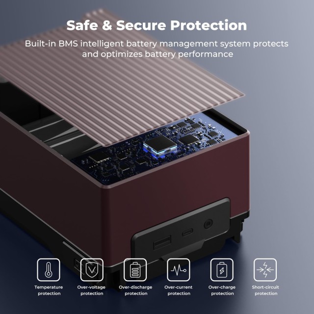 Sicher und zuverlässig: Der V-Mount-Akku verwendet hochwertige Marken-Akkuzellen, das intelligente BMS-System bietet mehrere Schutzfunktionen, darunter Überstrom-, Kurzschluss-, Übertemperatur- und Überspannungsschutz