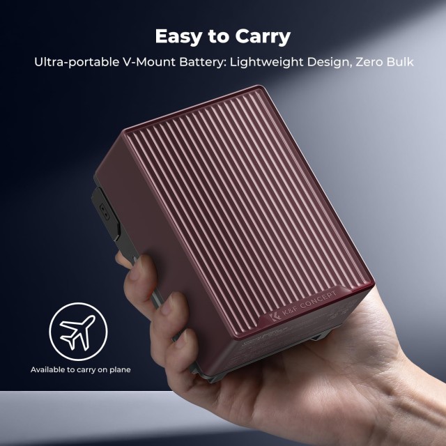Tragbares Design und flugzeugtauglich: Der V-Mount-Akku hat eine Größe von 104 x 74 x 50 mm und wiegt 525 g. Das Gehäuse ist robust und stoßfest und besteht aus feuerfestem PC-Material, das kratzfest und sicher in der Anwendung ist. Flugzeugtauglich, kann an Bord mitgenommen werden