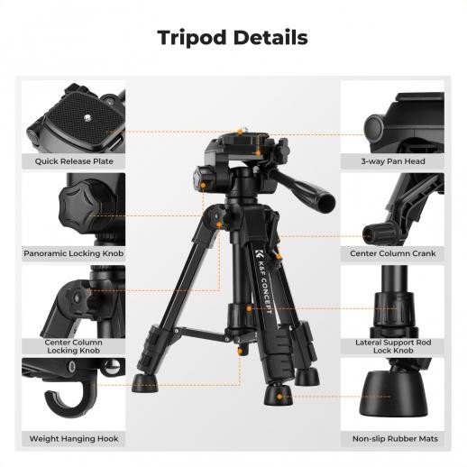 K&F Concept S233A0 Mini-Stativ – Kompaktes, leichtes und vielseitiges Stativ mit 3-teiligen Beinen aus ABS + Aluminiumlegierung, einstellbarer Höhe (30–63 cm), 360°-Drehung, Neigungsverstellung und 4 kg Tragkraft. Kompatibel mit Kameras, Smartphones, Tablets und Zubehör.