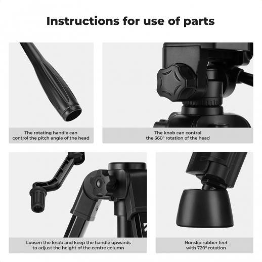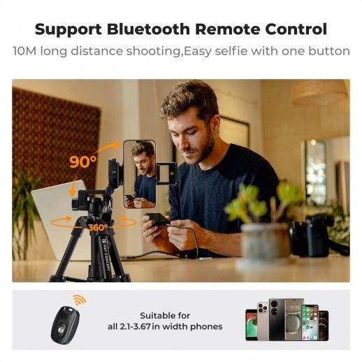 • Hohe Kompatibilität – 1/4"-Schraubbefestigung kompatibel mit Micro-Single-Kameras, DSLRs, Kompaktkameras, Aufhellblitzen und mehr. Inklusive Handy- und Tablet-Clips.