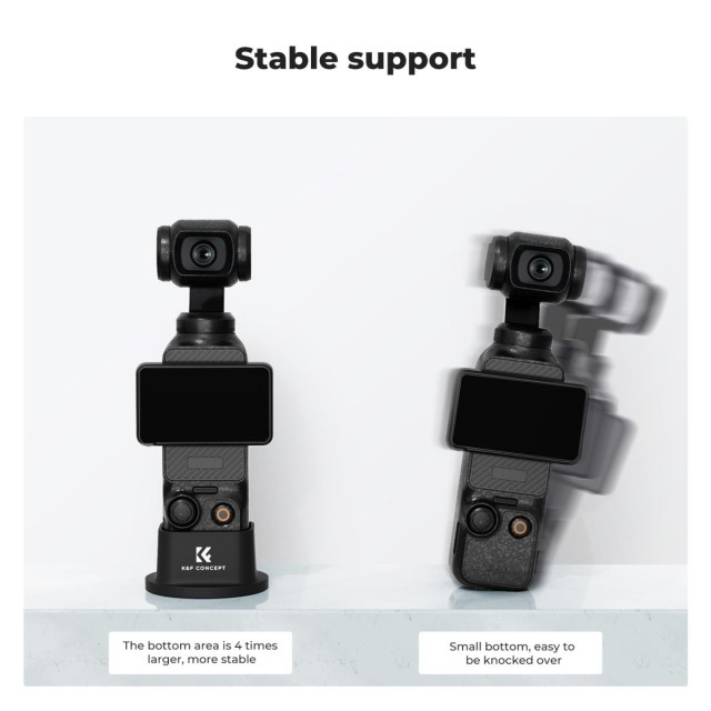 Die Basis ist für Pocket3 konzipiert. Dank der großen Standfläche steht sie stabiler auf dem Schreibtisch und kann nicht umfallen. Perfekte Passform. Sie wurde speziell für Pocket3 entwickelt und lässt sich am Gehäuse, am Gewindegriff und am Endurance-Griff anbringen, wobei die Original-Schutzhülle weiterhin verwendet werden kann.