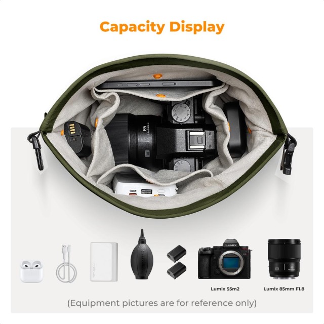 Aufbewahrung für eine Kamera und ein Objektiv. Als Schultertasche, Umhängetasche, Handtasche oder Innentasche vielseitig einsetzbar. Leicht und stilvoll mit Rollverschluss. Kombiniert modernes Design mit einem sicheren Rollverschluss für zusätzlichen Schutz.
