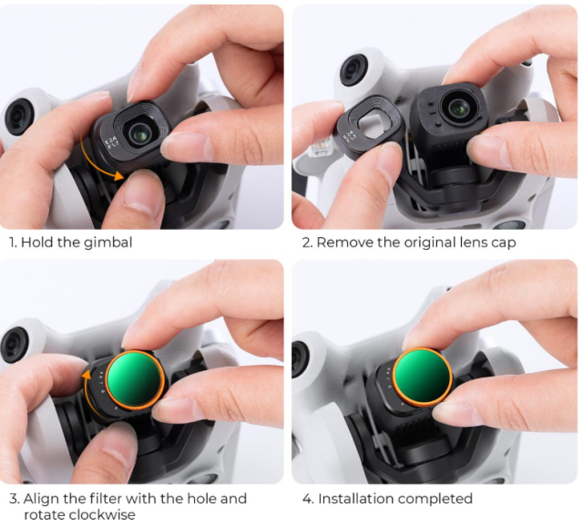Sein Kern besteht aus hochwertigem AGC-Optikglas, das beidseitig mit 28 Schichten fortschrittlicher Nanobeschichtungen versehen ist, die Wasser, Öl, Staub und Kratzer abweisen und selbst bei staubigen Starts oder nebligem Himmel eine kompromisslose Bildqualität gewährleisten. Der innovative, ultraleichte Rahmen des Filters wiegt federleichte 2 g (0,07 oz) und wird strengen Tests unterzogen, um sicherzustellen, dass er keinerlei Auswirkungen auf die Kalibrierung, Balance oder Flugdynamik des Gimbals hat, sodass Ihr Mini 4 Pro ohne Vibrationen oder Neukalibrierungen frei fliegen kann. Die Installation ist dank der präzisionsgefertigten Rückseite, die sich perfekt an die Basis des Kameraobjektivs anschmiegt, ein Kinderspiel. Der Filter lässt sich in Sekundenschnelle anbringen und abnehmen und bietet eine sichere, werkzeuglose Befestigung, die Windböen und Manövern standhält.