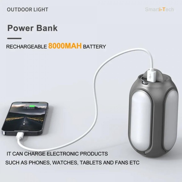* Kann als mobile Stromquelle verwendet werden: Diese Campinglampe hat einen eingebauten 8000mAh Hochleistungsakku mit einem DC 5V 2A USB-Ausgang zum schnellen Aufladen Ihres Handys, iPhones, Tablets und anderer Geräte über ein USB-Ladekabel beim Wandern oder Camping.