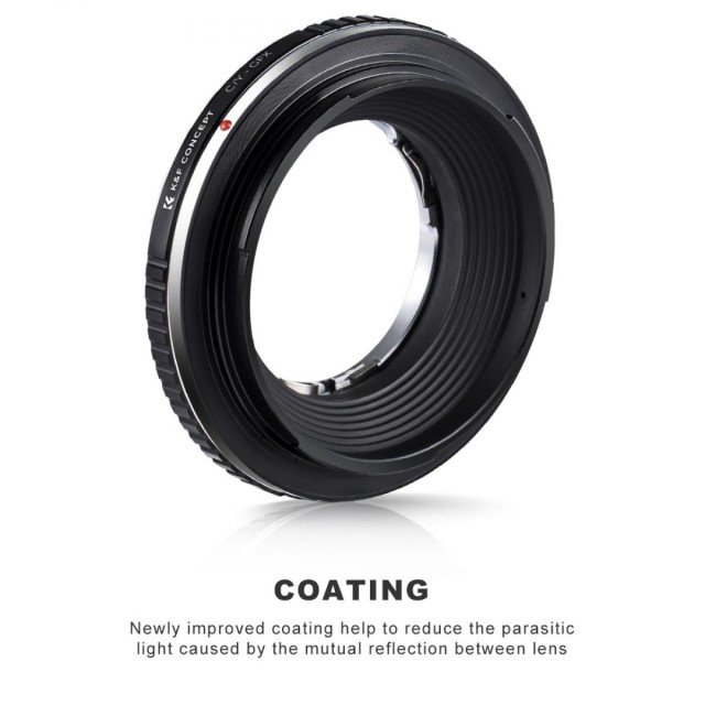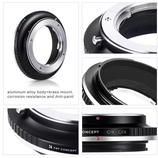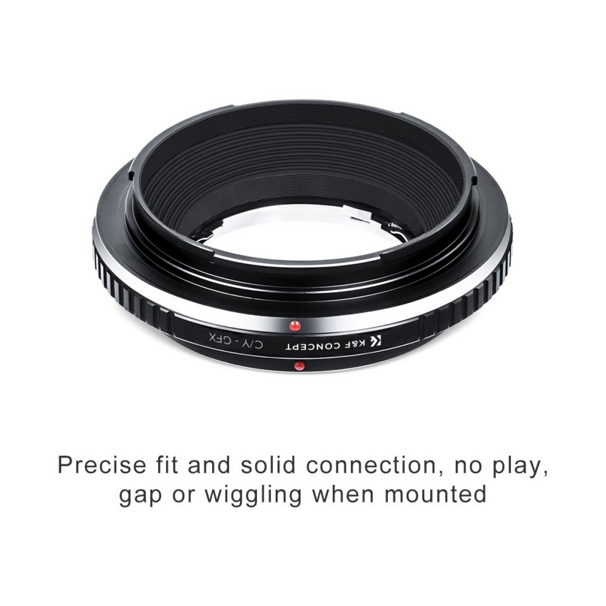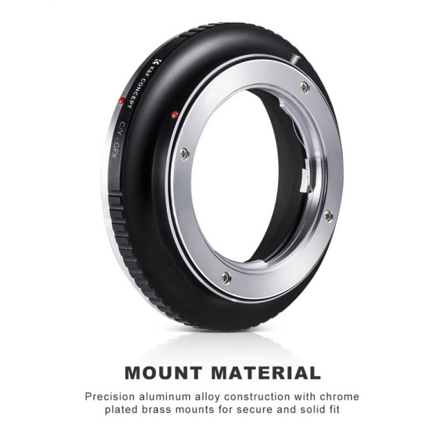 Der K&F Contax/Yashica-zu-Fuji-GFX-Objektivadapter ermöglicht die Verwendung von C/Y-Mount-Objektiven an Fujifilm G-Mount GFX-Mittelformatkameras. Mit seiner präzisen Ganzmetallkonstruktion mit verchromten Messingfassungen unterstützt er eine stabile manuelle Bedienung und Unendlichkeitsfokussierung.