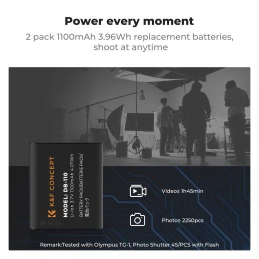 Vollständig dekodierende Batterie, kompatibel mit Ricoh-Kameras GR III, GR III HDF, GR IIIx HDF, GR IIIX, WG-6 mit DB-110-Batterien, auch kompatibel mit Olympus-Kameras TG7/6/5/4 mit Li-90B/Li-92B-Batterien.