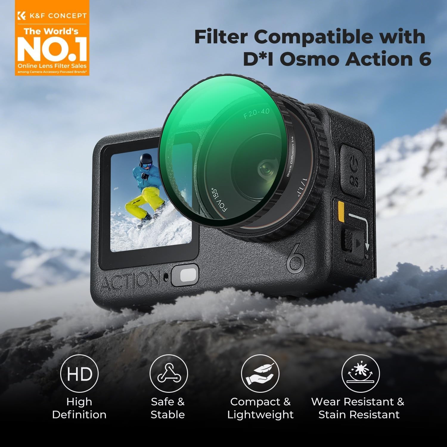Der K&F Concept Black Soft 1/4 Filter wurde speziell für die DJI Osmo Action 6 entwickelt und bietet perfekte Kompatibilität und mühelose Snap-On-Installation. Er lässt sich wie der Original-OEM-Filter direkt auf das Kameraobjektiv aufdrücken und verfügt über eine integrierte Anti-Rutsch-Unterlegscheibe, die auch bei intensiven Action-Aufnahmen einen sicheren Sitz ohne Verrutschen gewährleistet. Der Filter funktioniert nahtlos mit den meisten Gehäusen und Zubehörteilen, sodass er während des Gebrauchs nicht entfernt werden muss.