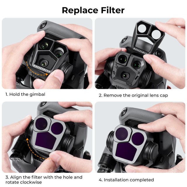 - * 【Lichtreduzierungseffekt】Dieses Mavic 3 Pro Filter-Kit mit 4-Pack ND-Filter, erfüllt die Bedürfnisse in Szenarien der Aufnahme von Langzeitbelichtung oder gegen starkes Licht, z.B. Langzeitbelichtung Timelapse von bewölkten Tagen zu hellen sonnigen Tagen.