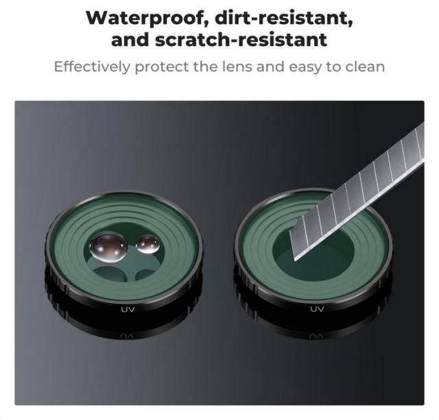 - Objektivschutz mit UV-Schutz: Dieser Filter blockiert effektiv UV-Strahlen, reduziert deren Auswirkungen auf die Bildklarheit und schützt das Objektiv Ihrer Action-Kamera vor Kratzern, Staub und Wasser.