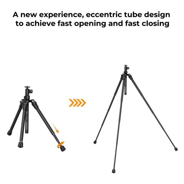 Das flexible Stativ von K&F Concept bietet eine vielseitige Funktionalität und lässt sich nahtlos zwischen Stativ, Tischstativ und Selfie-Stick umwandeln, um den verschiedenen Anforderungen an die Fotografie gerecht zu werden, egal ob Sie auf Reisen sind, Vlogging betreiben, live streamen und vieles mehr. Sein einzigartiges, exzentrisches Rohrdesign sorgt für einen schnellen und mühelosen Aufbau, sodass Sie sich ohne Zeitverlust auf Ihre Fotografie konzentrieren können. Dieses Stativ ist mit seinem 4-fach verstellbaren Rohr, das von 36cm/14.1'' bis 170cm/66.9'' reicht, und einer kompakten, zusammengeklappten Länge von nur 30cm/11.8'' und einem Gewicht von nur 0.88KG/1.94 lbs. äußerst portabel für unterwegs. Es bietet eine große Kompatibilität mit einem 1/4-Zoll-Standardgewinde, das für die meisten Arca-Swiss-Schnellwechselplatten geeignet ist, und einer 1/4-Zoll-Schraube für verschiedene Geräte, darunter Kameras, DSLRs, Projektoren, Teleskope und sogar Handys für Selfies, Live-Übertragungen und Zeitrafferaufnahmen. Mit einer robusten Tragfähigkeit von 4KG/8,8 lbs und einem glatten, ölfrei dämpfenden Design erleichtert es die präzise Kameradrehung, während die horizontale 360-Grad-Skala an der Basis die Panoramafotografie verbessert und beeindruckende Ergebnisse liefert, die es mit Ultraweitwinkelobjektiven aufnehmen können.