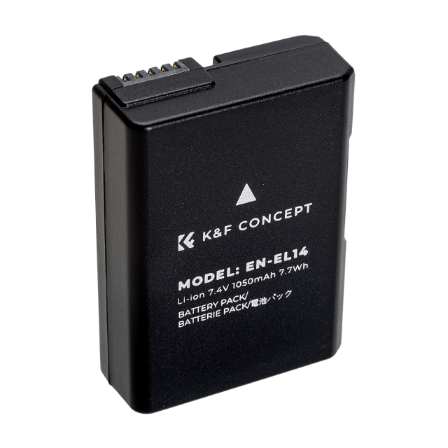 Sorgen Sie für unterbrechungsfreies Fotografieren mit dem K&F EN-EL14 1050-mAh-Lithium-Ionen-Akku für Nikon-Kameras. Dieser zuverlässige, langlebige und CE/RoHS-zertifizierte hochwertige Ersatzakku bietet verlängerte Leistung für Ihre Nikon DSLR- oder COOLPIX-Kamera.