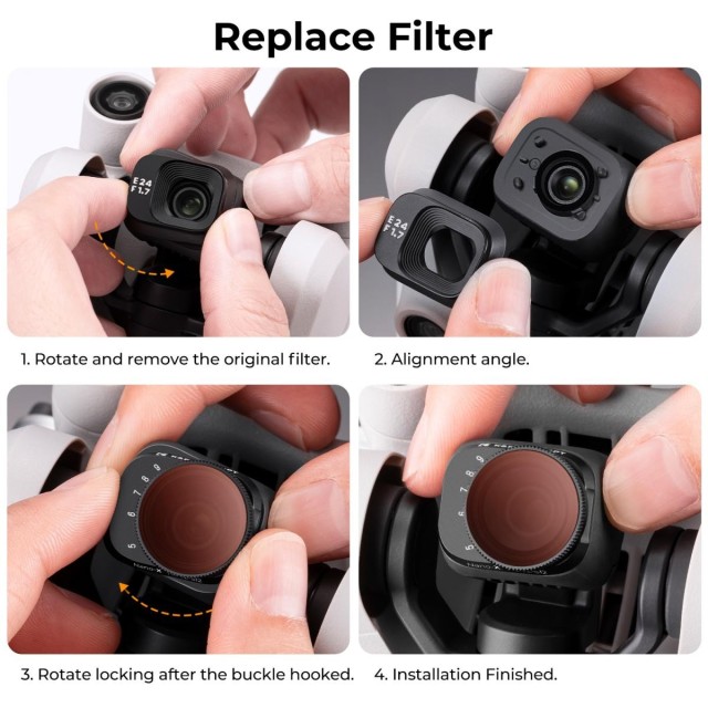 DJI Drone Mini 3 Pro & Mini 3 Variabler ND32-ND512 Filter mit einseitiger grüner Antireflexionsfolie. speziell für DJI Mini 3 Pro entwickelt. Reduzieren Sie 5-9 Blendenstufen, um Ihre gewünschte Belichtung bei wechselndem Licht zu erreichen, geeignet für helles und sonniges Tageslicht.