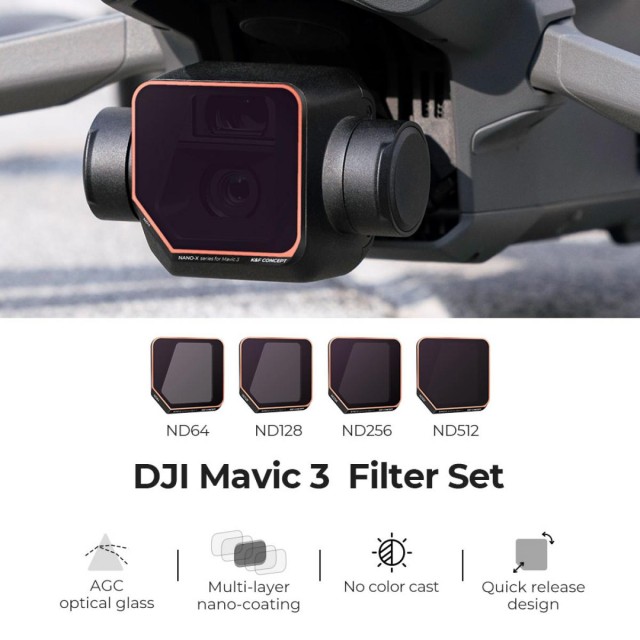 K&F Concept ND Filter Set Kompatibel mit DJI Mavic 3/Mavic 3 Cine ,4 Pack-(ND64/ND128/ND256/ND512) mit 28 Multi-Layer Beschichtungen