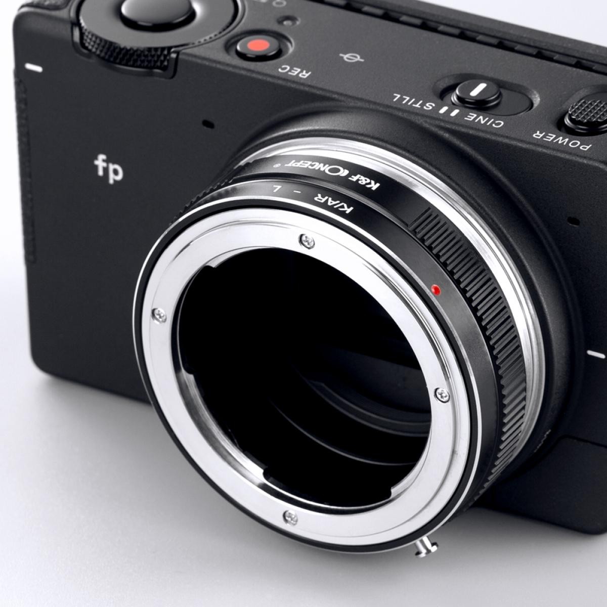 Der hochpräzise Objektivadapter K/AR-L von K&F ermöglicht die Verwendung von Konica-Objektiven mit AR-Anschluss an Leica-Kameras mit L-Anschluss. Er besteht aus Kupfer und einer Aluminiumlegierung und bietet eine reibungslose Montage, manuelle Blendensteuerung über den integrierten Blendenring und Unterstützung für Unendlich-Fokus.