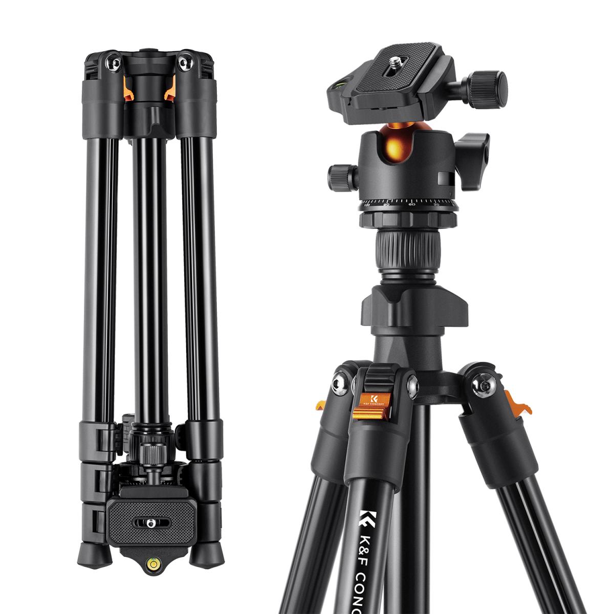 Kompaktes und tragbares Stativ - perfekt für Reisen, Vlog und Arbeit. Qualität Militär Magnesium-Aluminium-Legierung, Korrosionsbeständigkeit; Stativ mit Kugelkopf wiegt nur 2.56 lbs/1.16kg, kann es 180°reflexed und gefaltet werden, um 390mm/15.35", einfach in einem Rucksack oder Koffer zu setzen, wenn Reisen.