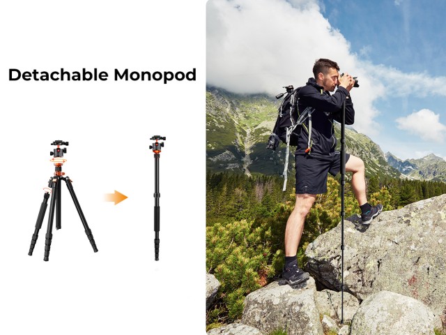 * 【Detachable Monopod】 Es kann in ein leichtes Einbeinstativ oder Spazierstock allein verwandelt werden, um Ihre Fotografie vielfältiger zu machen.