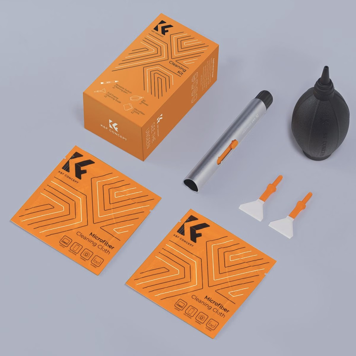 Das K&F Concept 6-in-1-Kamera-Reinigungsset enthält alle wichtigen Werkzeuge, die Sie zur sicheren Reinigung von Kameras, Objektiven und empfindlichen Elektronikgeräten benötigen. Mit einem leistungsstarken Staubbläser, einem austauschbaren Reinigungsstift, Vollformat-Sensorreinigungspins und zwei vakuumversiegelten Mikrofasertüchern gewährleistet dieses Set eine professionelle Pflege für Fotografen aller Erfahrungsstufen.