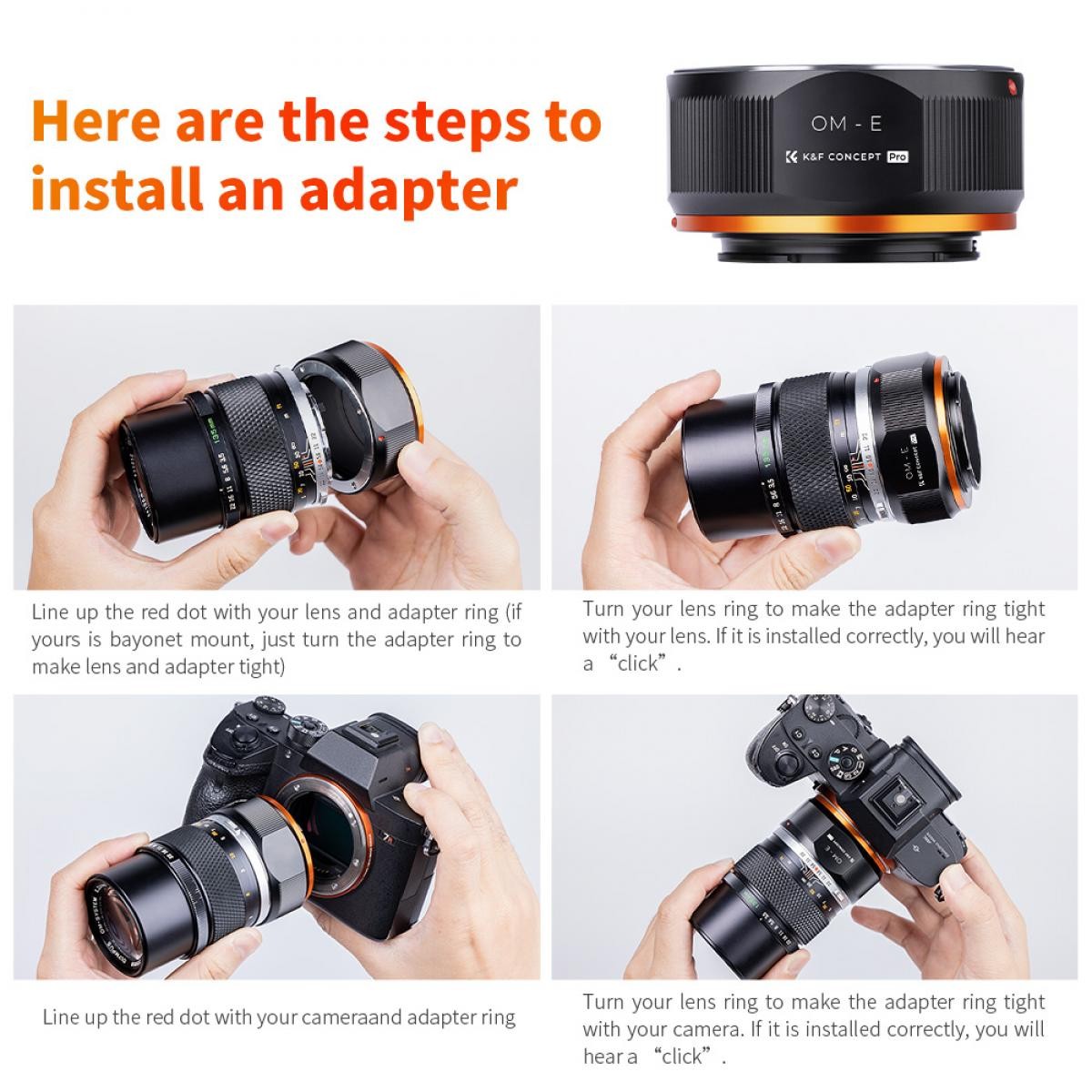 Der K&F Concept OM-NEX-Adapter für manuelles Fokussieren ist mit Olympus OM-Objektiven für Kameras mit Sony E-Mount-Bajonett kompatibel.