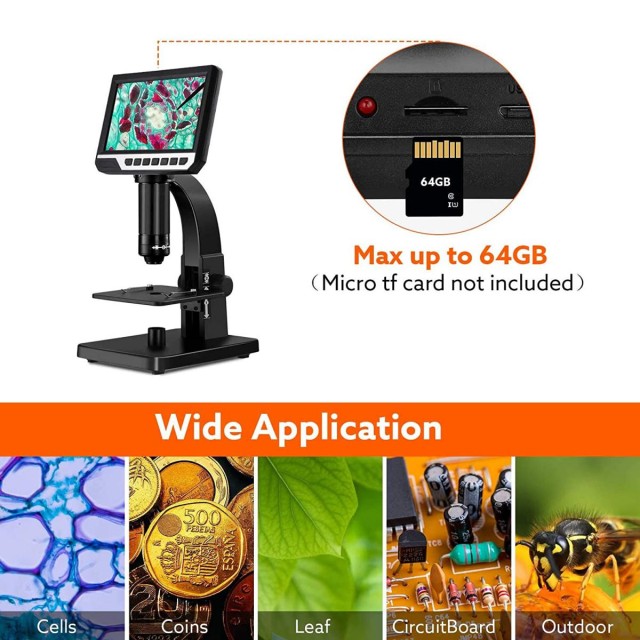 * Bild- und Videospeicherausgang: eingebaute 12MP digitale Mikroskopkamera, 1080P High-Definition-Bildgebung. Es kann 4032*3024P Bilder und 1920*1080P Videos aufnehmen und unterstützt einen maximalen Erweiterungsspeicher von 64G (Speicherkarte nicht enthalten);