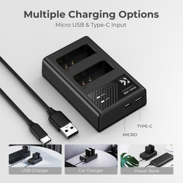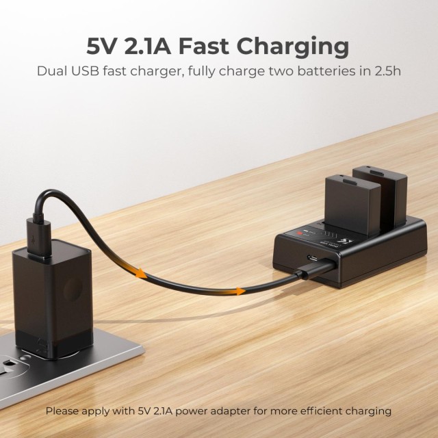 Zwei 1200mAh LP-E10 Ersatzakkus und ein Dual-Slot-Ladegerät sorgen für mehr Energie bei Kameraaufnahmen