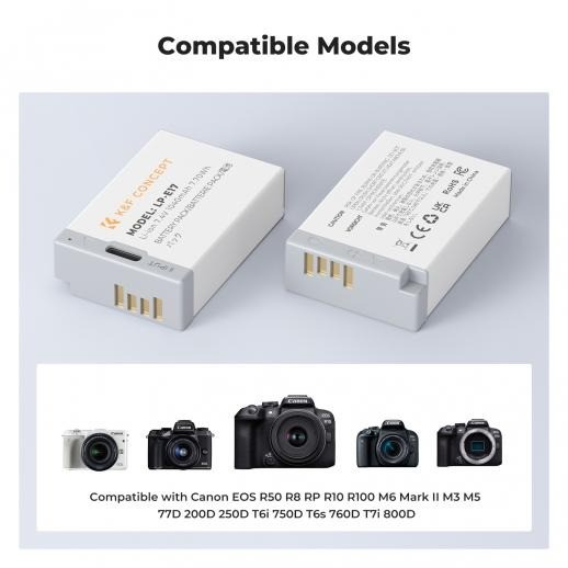 1040mAh Leistungsstarke Batteriekapazität. Der 2er-Pack LP-E17 von K&F Concept bietet lang anhaltende Leistung für ausgedehnte Kameraaufnahmen. Vollständig dekodierte Ersatzbatterie. Diese LP-E17 Batterie ist weitgehend kompatibel mit Canon EOS R10, EOS M6 Mark II, Rebel SL2, T6i, T6s, T7i, EOS 200D 750D 760D 77D, 800D 8000D KISS X8i Digita SLR Kameras. Es ist vollständig dekodiert und keine Pop-up-Warnung auf Ihrer Kamera.
