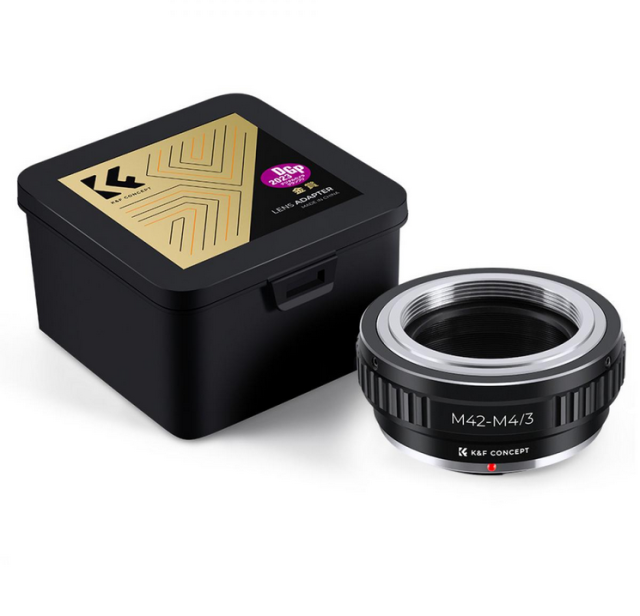 Der K&F M42 Objektive auf M43 MFT Mount Kamera Adapter ermöglicht die Verwendung von M42 Mount Objektiven an Micro 4/3 (MFT) Kameragehäusen. Dieser Adapter ist kompatibel mit einer Vielzahl von Micro Four Thirds Kameras von Panasonic, Olympus, JVC, DJI, Kodak und Blackmagic. Er ist aus robustem Messing und Aluminium gefertigt und gewährleistet einen stabilen und präzisen manuellen Betrieb mit Unterstützung für den Unendlich-Fokus. Für schwere Mittelformat-Objektive empfiehlt sich die Verwendung eines Teleobjektivhalters und eines Stativs für ausgewogene Aufnahmen.