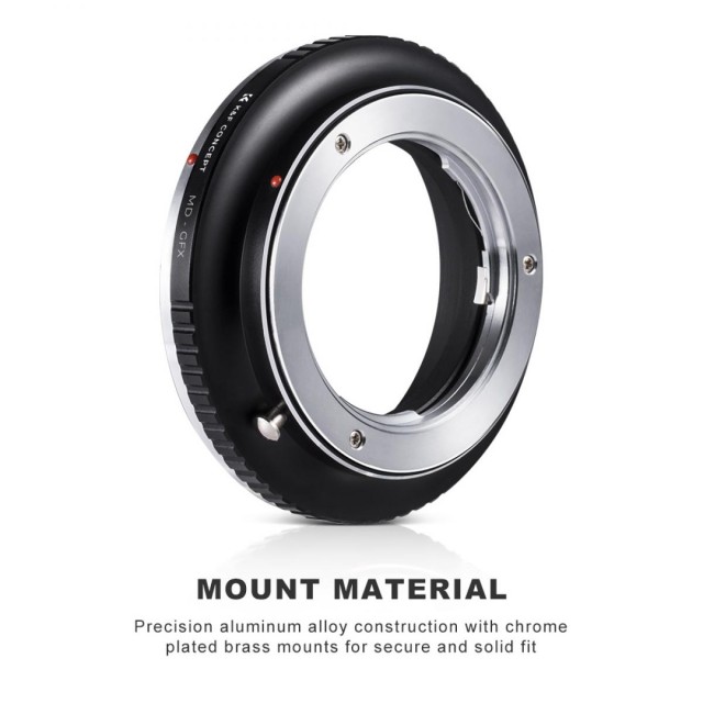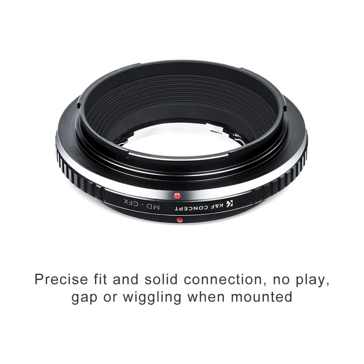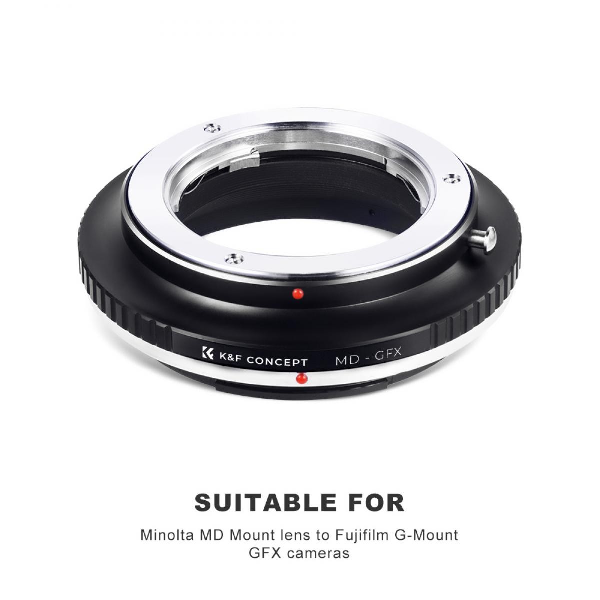 Mit dem K&F Minolta MD-zu-Fuji-GFX-Objektivadapter können Minolta-MD-Objektive sicher und dauerhaft auf Fuji-GFX-Mittelformatkameras montiert werden und bieten vollständige manuelle Steuerung.