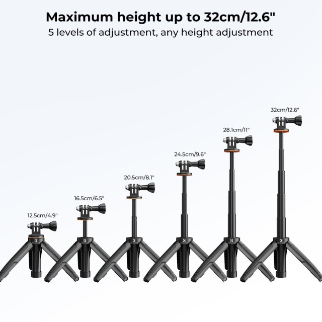 Action Camera Mounts Selfie Stick Desktop Stand (Small Size) für Gopro, Action und Insta Schwarz Orange. Das Telefon kleine Stativ nimmt eine verbreiterte feste Struktur und ein rutschfestes Silikon an. Das modifizierte Rohr hat einen eingebauten stoßdämpfenden Gummiring, wodurch das gesamte Stretch-Rohr stabiler und stärker.