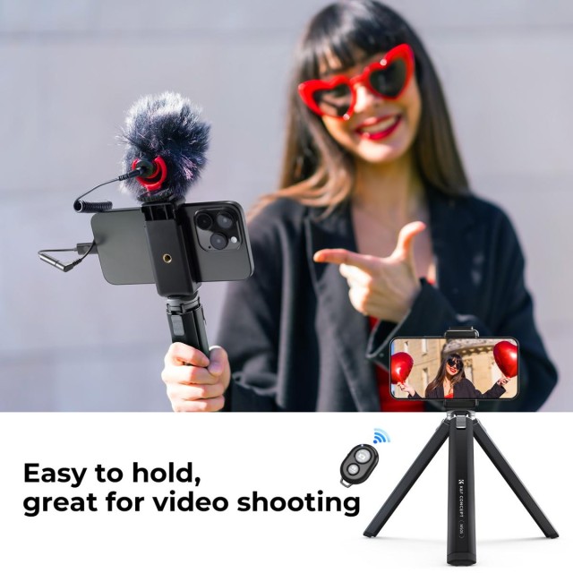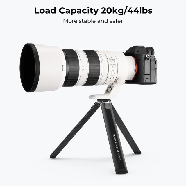 Das K&F MS05 ist ein leichtes und robustes Mini-Stativ aus Metall für Smartphones und Kameras. Es verfügt über eine 2-stufige Höhenverstellung, eine 1/4-Zoll-Schraubgewindeaufnahme mit einer robusten Tragkraft von 20 kg und ein rutschfestes Design für stabilen Halt bei allen Aufnahmen.