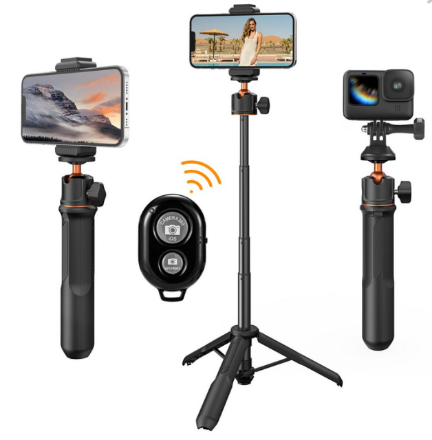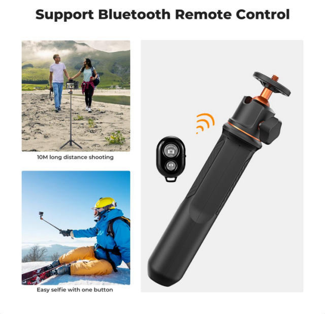 Das K&F MS11 Stativ ist eine vielseitige und leichte Lösung für Benutzer von Handys und Action-Kameras. Es verfügt über eine Handyklemme, die Geräte mit einer maximalen Breite von 91 mm unterstützt, wodurch es ideal für Videoaufnahmen und -übertragungen ist. Der mitgelieferte GoPro-Adapter erweitert die Verwendung auf Action-Kameras wie GoPro, DJI Osmo Action und Insta 360-Geräte. Die Oberseite des Stativs verfügt über eine 1/4-Zoll-Schnittstelle, die den Anschluss an verschiedene Geräte für unterschiedliche Aufnahmeanforderungen ermöglicht. Der eingebaute stoßabsorbierende Gummiring und die verbreiterte feste Struktur sorgen für Stabilität, während die rutschfeste Silikonunterlage an der Unterseite sicheren Halt bietet. Mit einem Gewicht von nur 147 g ist dieses Stativ äußerst tragbar und eignet sich perfekt für Reisen und Outdoor-Fotografie. Die mitgelieferte Bluetooth-Fernbedienung lässt sich schnell und ohne Passwort koppeln und unterstützt Foto- und Videoaufnahmen in einem Umkreis von 10 Metern mit einer kontinuierlichen Betriebsdauer von bis zu 10 Stunden.