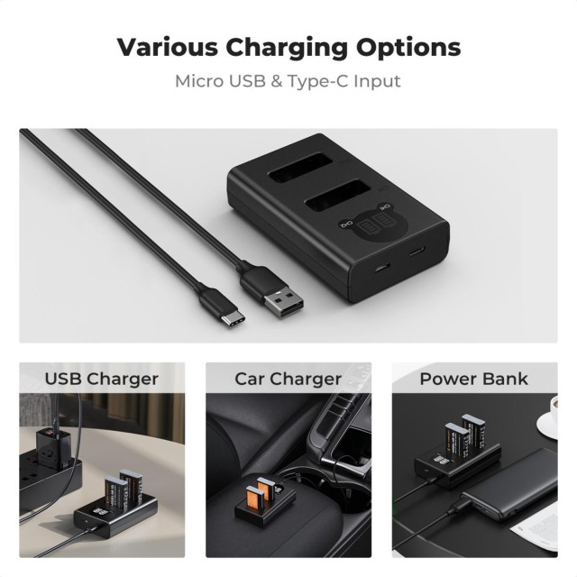 K&F Concept 2er Pack NB-13L Akku und Dual Slot Ladegerät Set für Canon EOS G7 X Mark II, G7 X, G1 X Mark III, G5 X, G5X Mark II, G9 X, G9 X Mark II, SX620 HS, SX720 HS. Das intelligente LCD-Display des Ladegeräts zeigt die Akkukapazität deutlich an, so dass Sie den Ladestatus schnell erfassen können. Eingang: 5V 2.1A, Ausgang: 8.4V 700mAh (1 Akku), 8,4V 500mAh (2 Akkus).