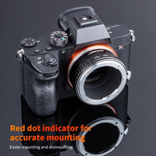 Mit dem K&F Concept Nikon AI zu Sony E-Mount Kupfer-Objektivadapter können Sie Nikon F/AI-Objektive an spiegellosen Sony E-Mount-Kameras befestigen. Er bietet eine robuste Vollmetallkonstruktion, manuelle Bedienung und Unterstützung für Unendlichkeitsfokus.