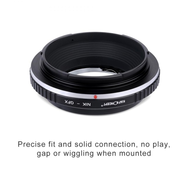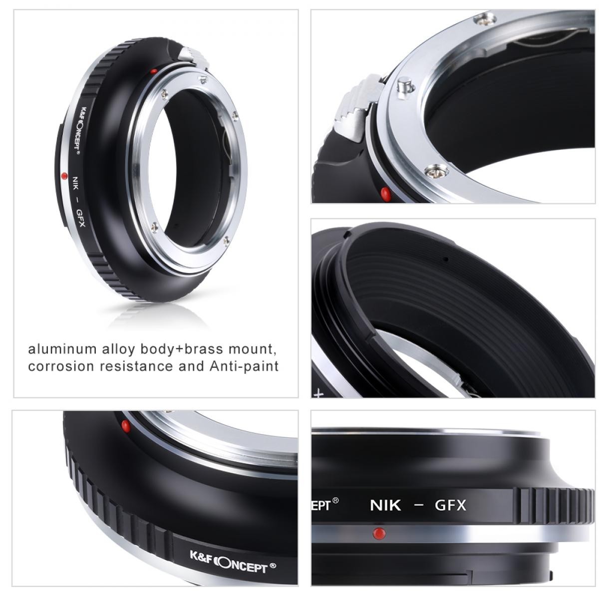 Der K&F Nikon-zu-Fuji-GFX-Adapter ermöglicht die Verwendung von Nikon-AI-, AI-S- und F-Mount-Objektiven an Fuji-GFX-Mittelformatkameras und zeichnet sich durch eine robuste Metallkonstruktion und vollständige manuelle Steuerung aus.